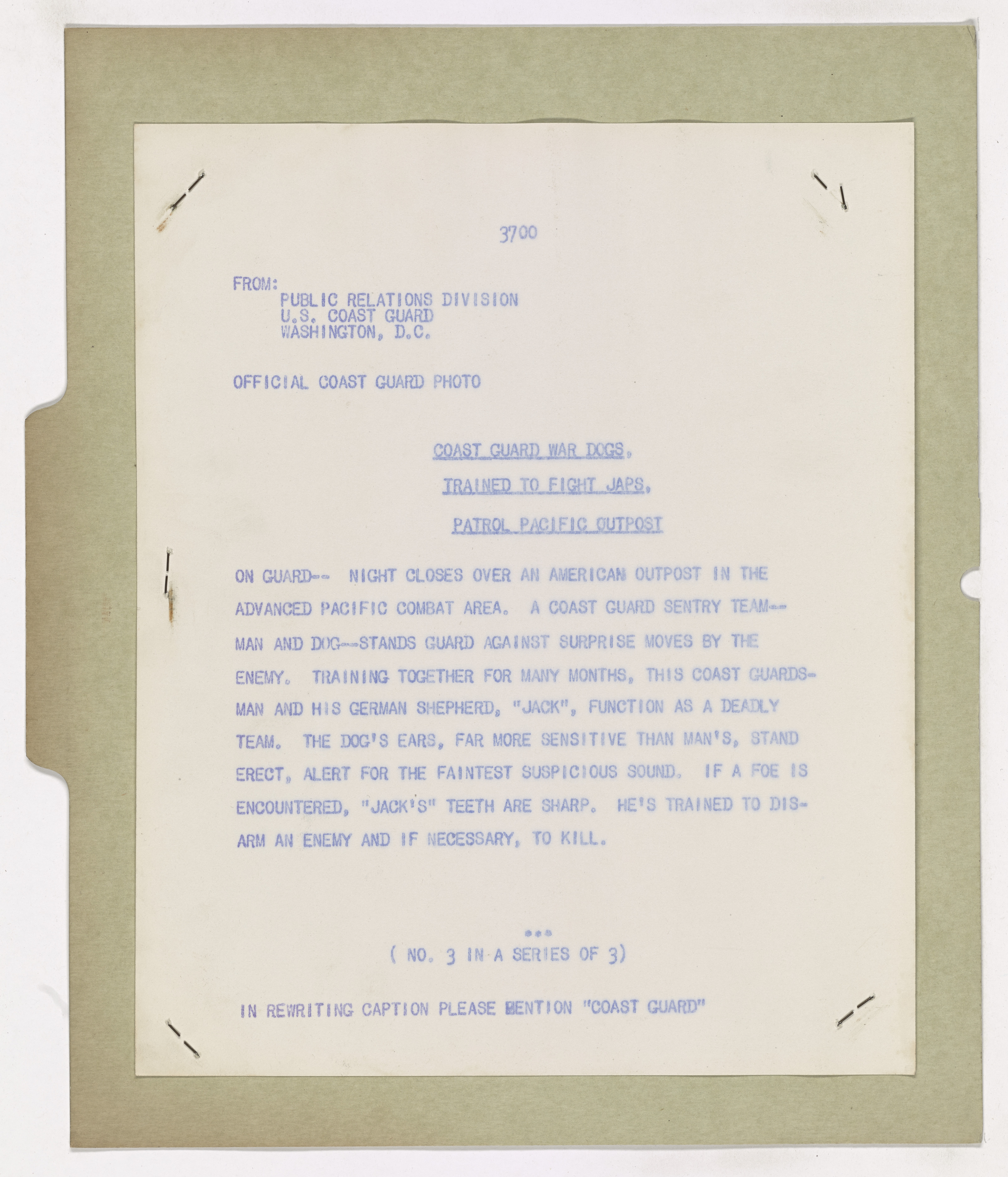 The photographs in this blog post are found in RG-26-G, Activities, Facilities, and Personalities, 1886 – 1967. RG-26-G is the subject of an ongoing digitization project in Still Picture Branch. Some digitized images are already available on the National Archives Catalog, and many more are set to follow in the months to come. All digitized images from RG-26-G are currently available in our Research Room in College Park, MD. We invite everyone to come see us and check out many more amazing images of service men and their animal companions!
