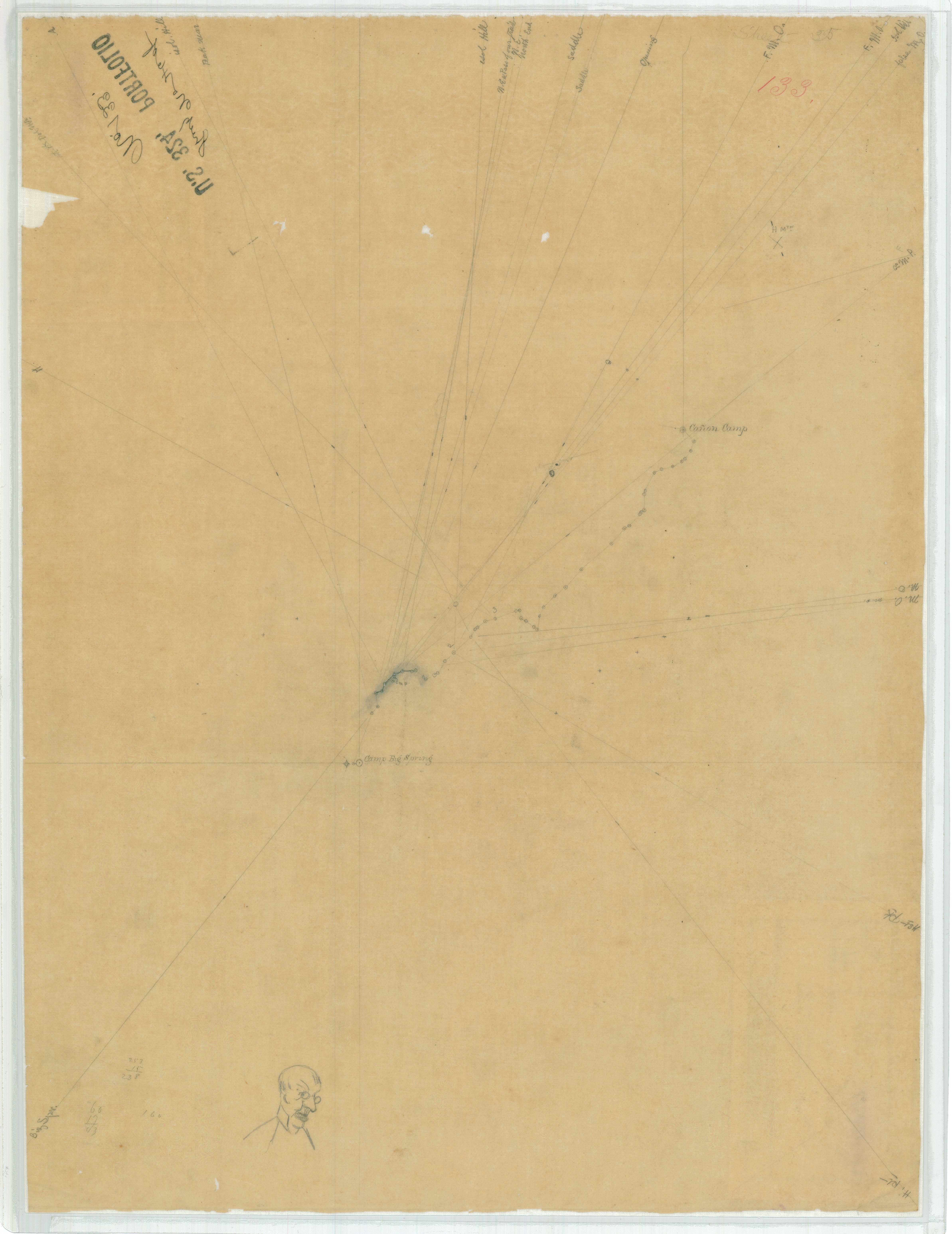 The following images come from a series of maps that are currently in the process of being digitized to be added to the catalog.  The maps below all contain examples of doodles and drawings found on maps and texts in the U.S. file unit of RG 77: Civil Works Maps File (NAID 305566).  Some of the drawings, like the one immediately below, are very detailed and labelled, and some are much less so, being little more than stick figures.  Others appear to have been made by someone practicing their signature, and at least two of the drawings look to be designs for someone’s personal monogram.