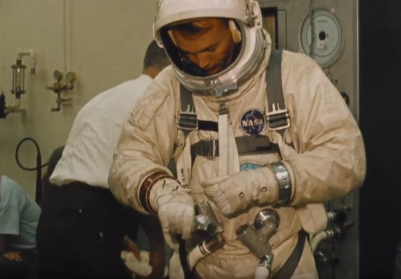 The Manned Spacecraft Center in Houston, Texas, operated the Water Immersion Facility, a large water tank in which astronauts would train underwater to experience weightlessness similar to that of the 1/6th gravity of the Moon. The clip below shows Neil Armstrong’s Extravehicular Activity (EVA) training, just three months before the Apollo 11 launch. Armstrong, fully dressed in the spacesuit and life support equipment that he would need to wear on the lunar surface, is submerged in the water tank and practices climbing up and down the ladder of a mock lunar module. Similar to the KC-135 training, there is a moment where Armstrong falls onto his back and is expected to right himself without help from nearby technicians. Note the divers with underwater cameras swimming around the tank, capturing this training from every angle for later review.