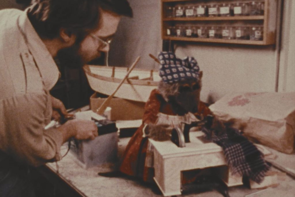 Episode 72 of “Vision USA,” released in 1978, takes a behind-the-scenes look at Jim Henson’s “Emmet Otter’s Jug-Band Christmas.” Emmet Otter was one of the first Muppet productions to use radio-controlled puppetry, and “Vision USA” took the opportunity to show the world American advancements in motion picture special effects technology. The clip below shows the Emmet Otter characters under construction in the Muppet workshop. Their soft and fuzzy exteriors mask intricate, remote-controlled metal skeletons.