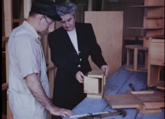 The film discusses the rigorous testing that Bureau staff conducted to make sure that all of their ideas were successful and useful. They created small scale models as well as full sized working kitchens. They based their ideas off of existing design principles and that of having good working heights, and lots of light, storage and work space.