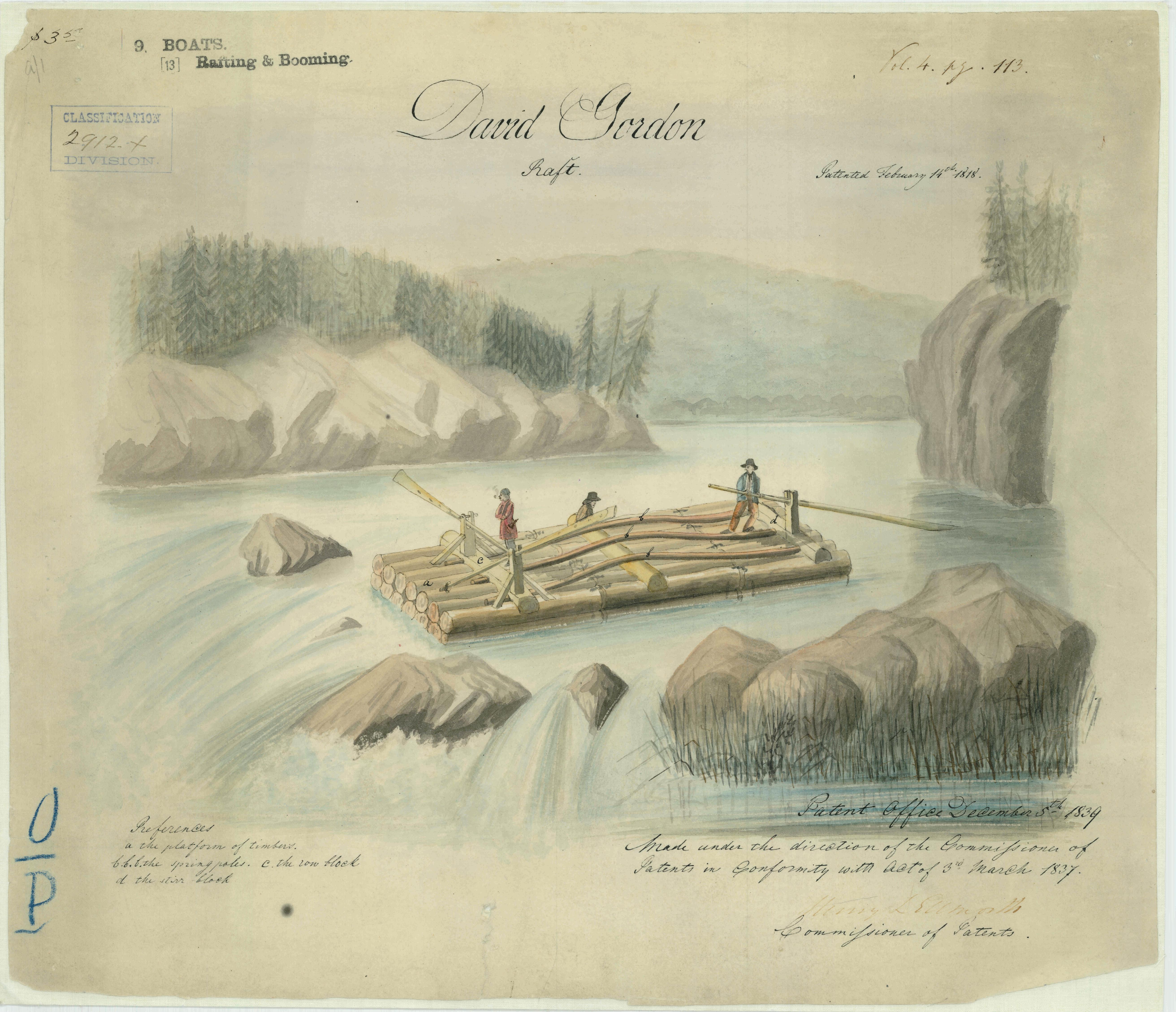 RG 241: Restored Patents, 2912X.  David Gordon’s Patent Drawing for a Raft. NAID: 149285920.