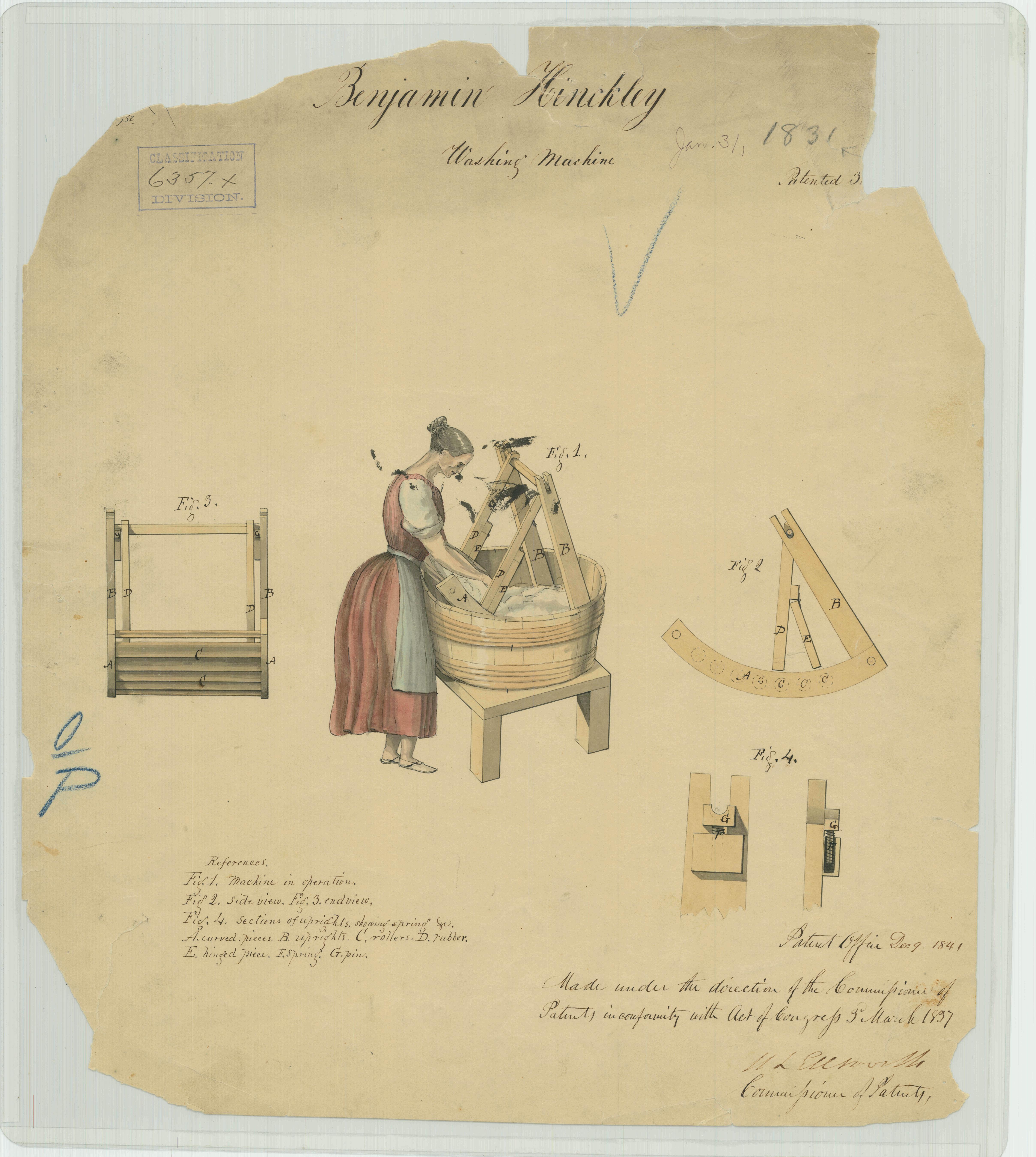 RG 241: Restored Patents.  Benjamin Hinckley’s Patent Drawing for a Washing Machine.        NAID: 159159960
