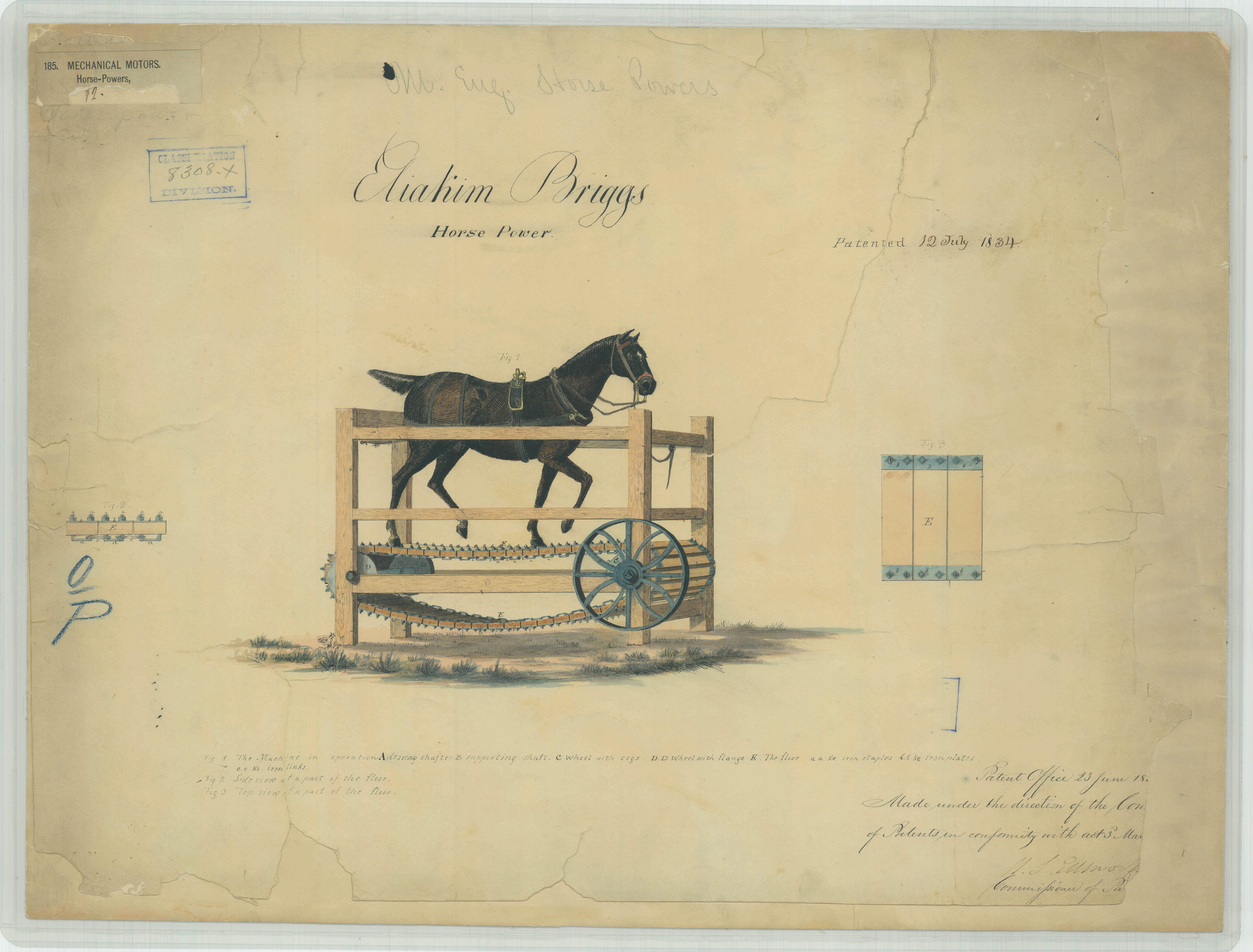 RG 241: Restored Patents, 8308X.  Eliakim Briggs’ Patent Drawing for a Machine for Producing Horse Power.  NAID:  178329130.