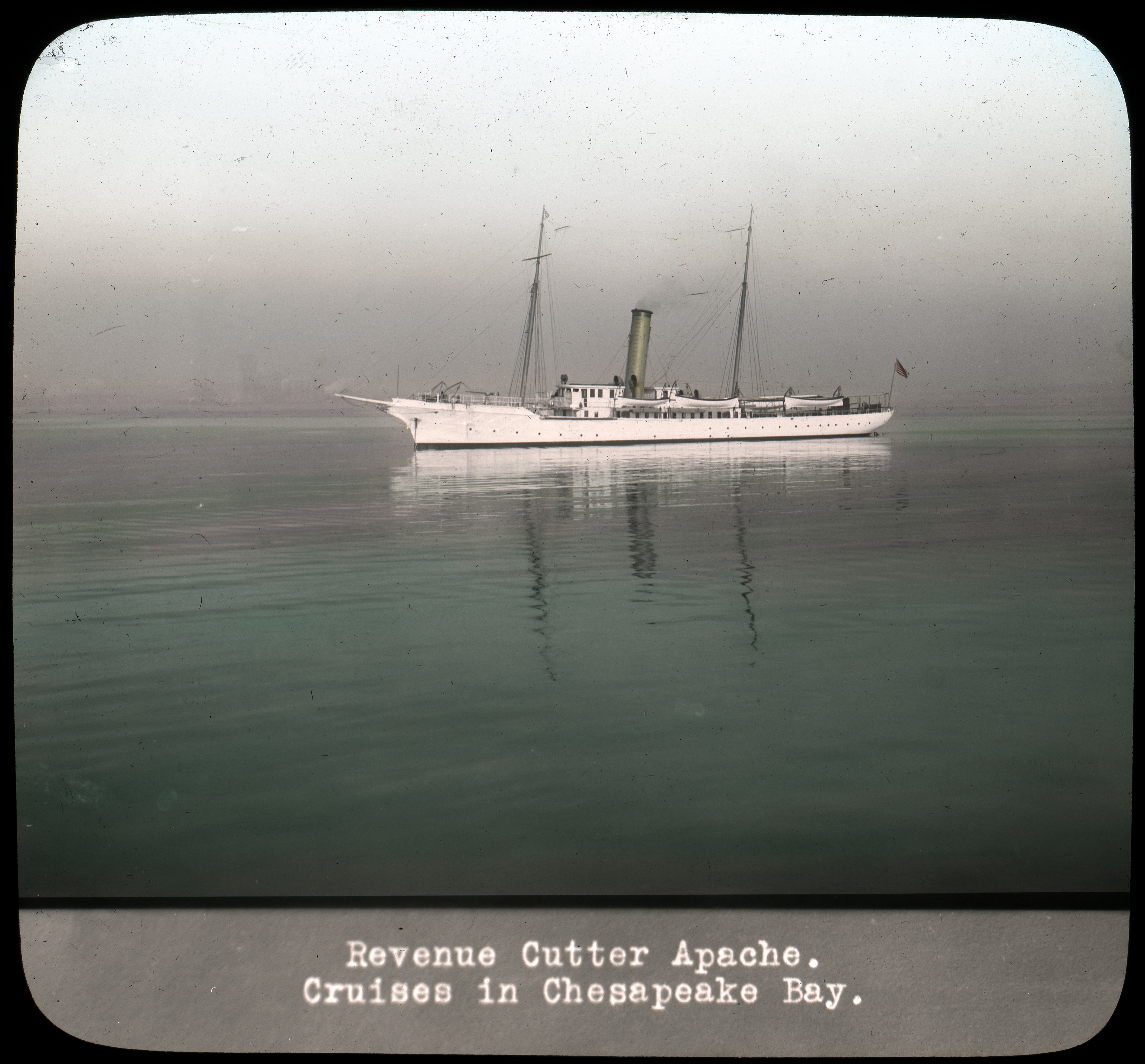 In addition to the images themselves, this series features a couple more characteristics worth noting. First, despite its obvious connections to the Coast Guard, the series is part of Record Group 56, General Records of the Department of the Treasury, reflecting its ties to the agency within which the Revenue Cutter Service was established in 1790. And second, the images include original captions that were attached to the front of the slides, providing descriptions for material likely created for promotional and recruitment purposes.