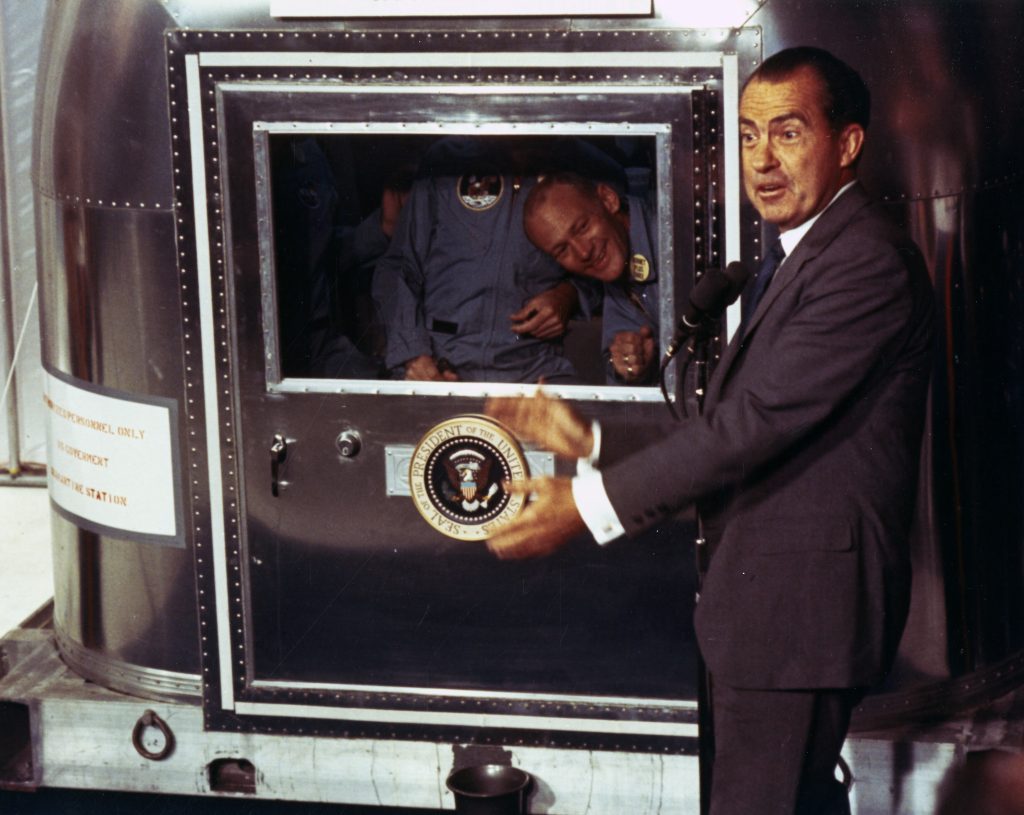 This photo was found after searching “Richard Nixon” within the Color Photographs Index. The color image was taken after 1964 (Apollo 11 landed in 1969), and was “Transferred to NARA.” Since the image was taken after 1964 and in color, it will be located within 255-CC. The identifier number is 69-HC-802, which means the full number is 255-CC-69-HC-802.