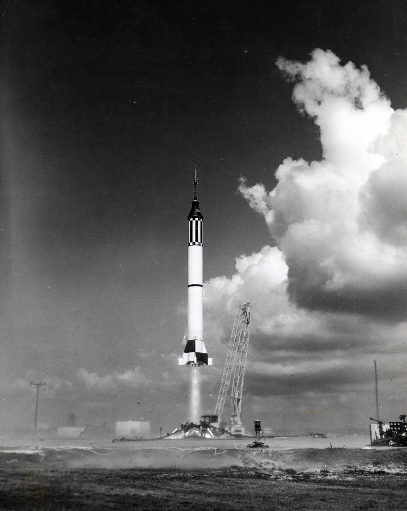 This photo was located after searching for the date “May 5, 1961”–the day Alan Shepard was launched into space–within the Black and White Index. The black and white photo was taken before 1964, and is confirmed as “Transferred to NARA,” which means it can be located within the series 255-G. In order to locate the photo within 255-G, you must note that the subject is the “Mercury-Redstone III,” and the photograph’s identifier number is 61-MR3-72D. Therefore, the full item number is 255-G-61-MR3-72D.