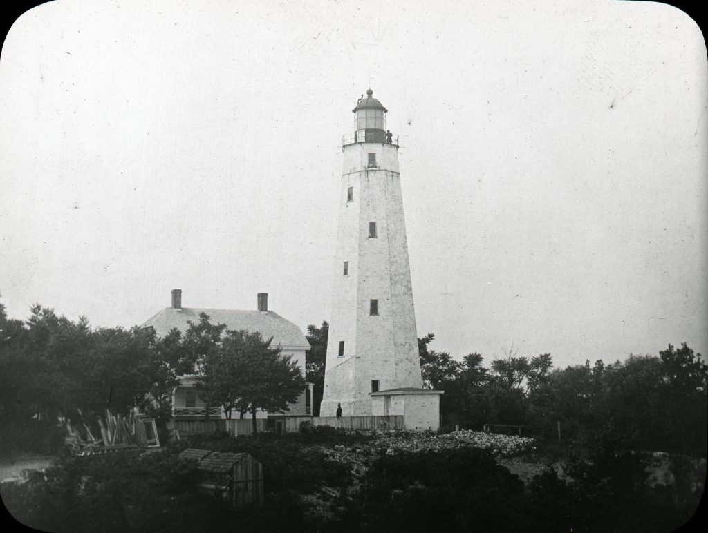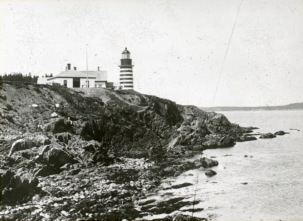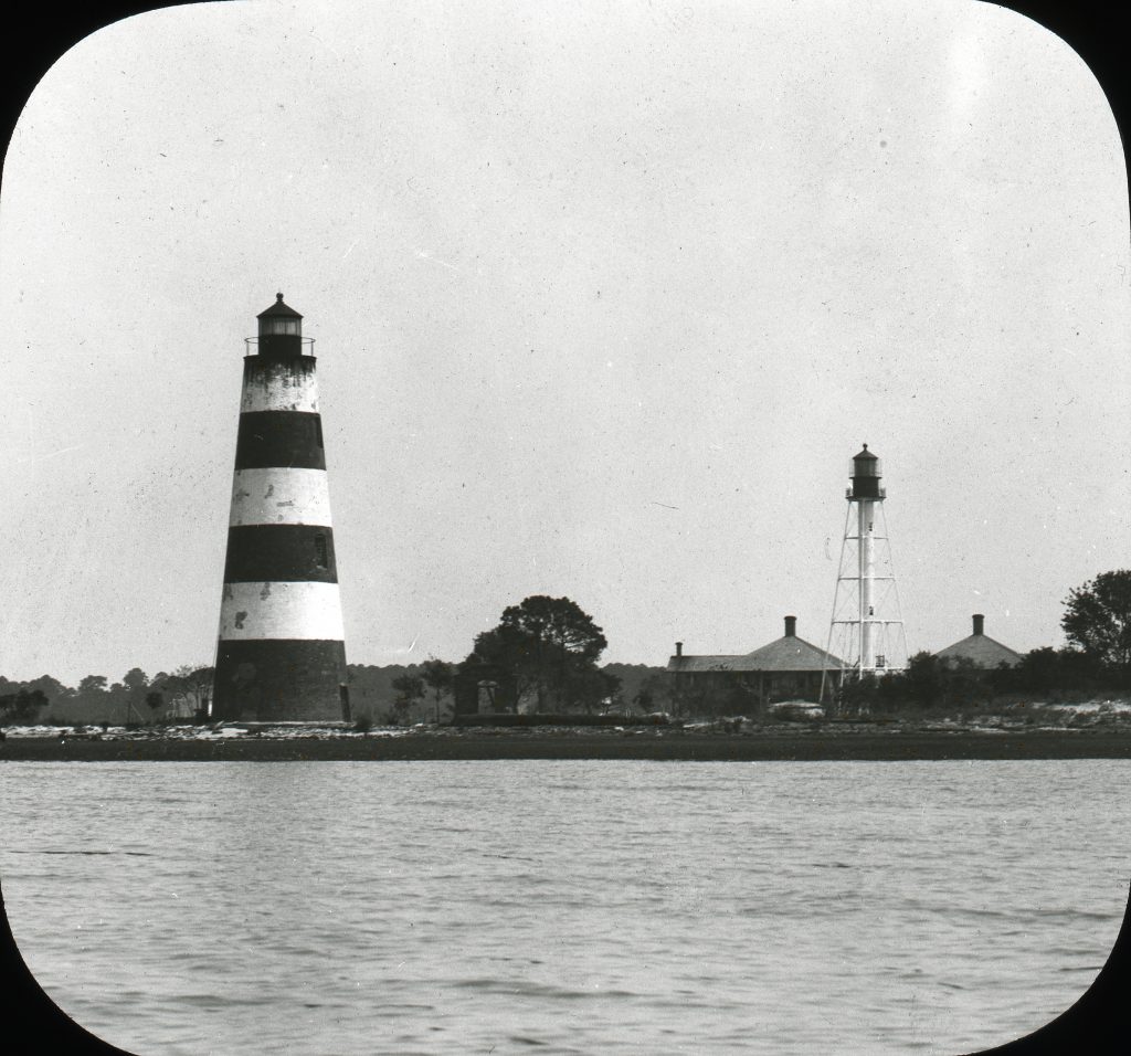 Consisting of black and white glass lantern slides and a small number of hand-colored slides, this series includes lighthouses of all sizes and shapes (including conical, cylindrical, octagonal, triangular). If all the slides were in color, we could see some variety there as well (from the images below, lighthouses at both Sapelo Island, Georgia and West Quoddy Head, Maine feature red and white stripes). These slides were likely maintained by the Bureau of Lighthouses, also known as the United States Lighthouse Service, before it merged into the United States Coast Guard in 1939.